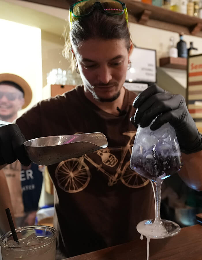 I nostri cocktail nascono da mani esperte e menti un pò folli, che mixano ingredienti locali, spiriti internazionali e un pizzico di ispirazione improvvisa.